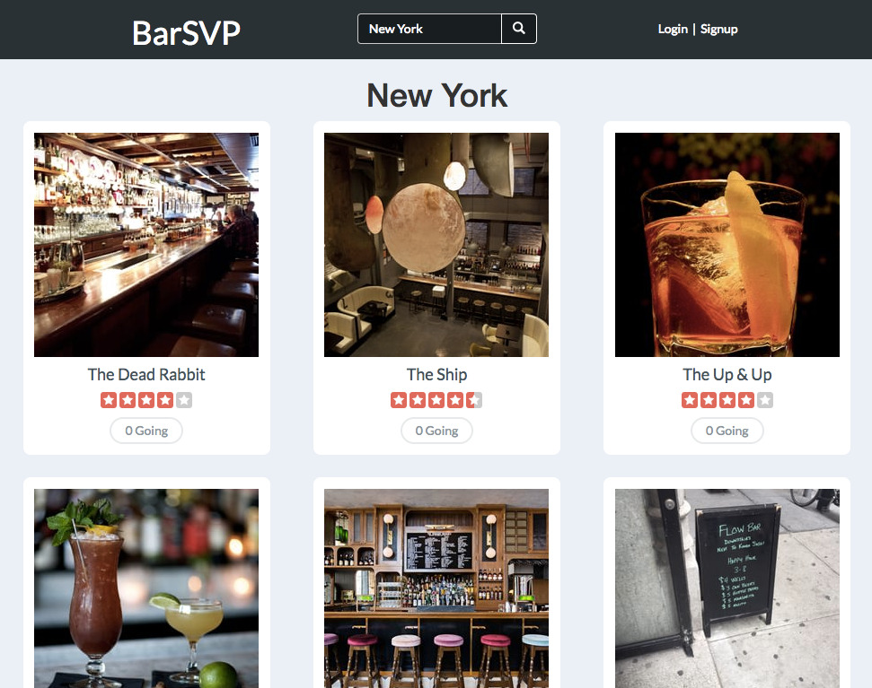 The application stores businesses by name and the ID’s of the users attending them along with an expiration date. When a user searches, the Yelp API is queried, and then the resulting response is combined with the application’s data on user attendance, based on the businesses’ name.