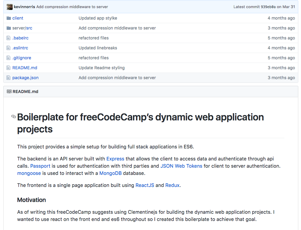 The boiler plate was my first fullstack project. Through building it I learned how to use mongoose/MongoDB , passport, eslint and I solidified my understanding of webpack and babel.